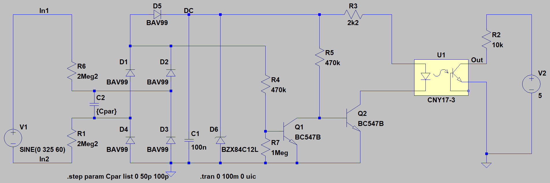 In den meisten Fällen besteht ein Nulldurchgangs-Detektor aus einem Widerstand und einem Optokoppler.