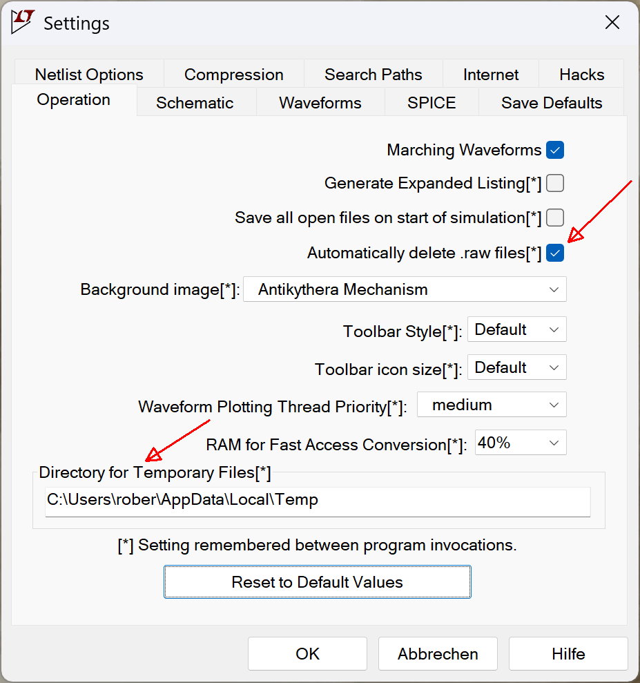It's also advisable to enable "Automatically delete .raw files" under "Operation" in the Control Panel. Raw files contain the generated simulation data and can become very large. The next time you click "Run," they'll be deleted first anyway. This can save a lot of space on your hard drive.
