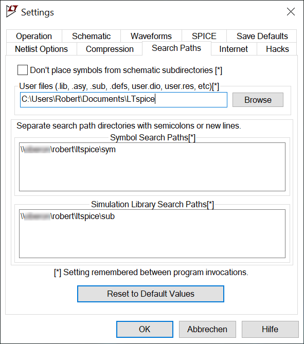 folder in it for your own models and symbols (either created by yourself or downloaded from somewhere else). Ideally, this directory is located on your home server or somewhere in the cloud so you can access it from multiple computers. - Enter these two paths in the LTspice Control Panel under
