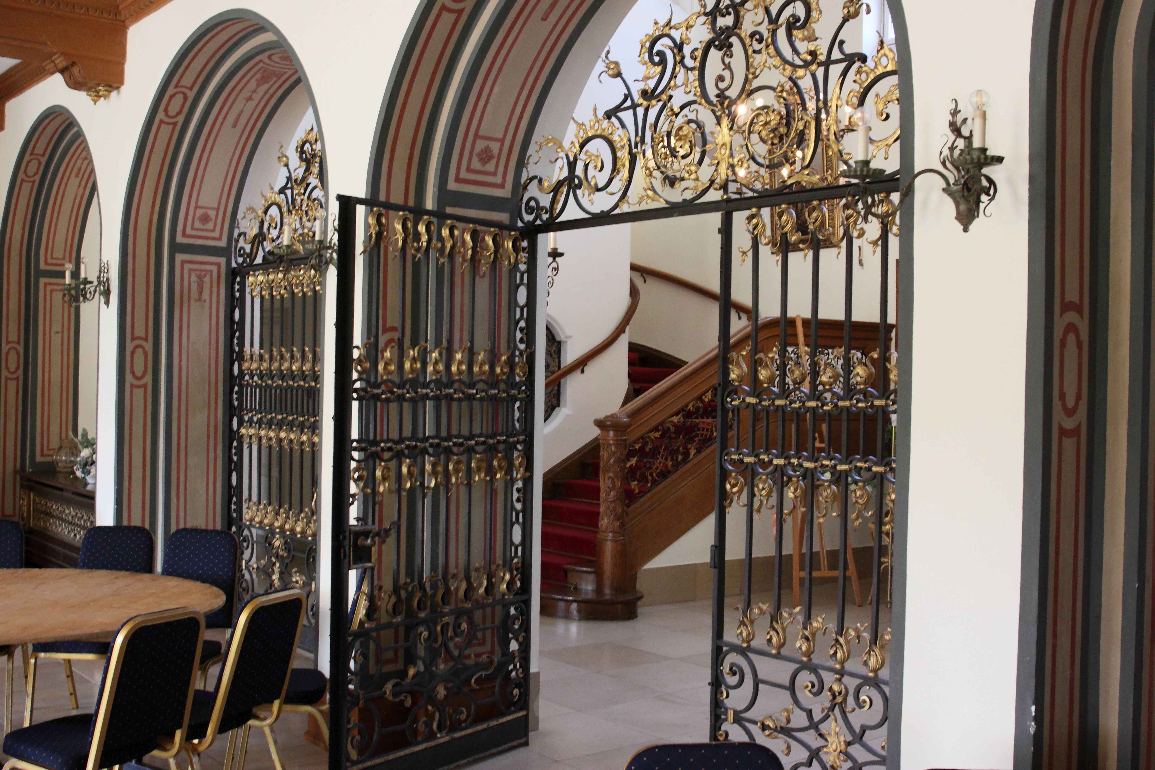Was es noch gibt ist das schmiedeeiserne Gitter und die pompöse